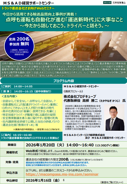 トラック運送事業者さま向けリスクマネジメント支援等のご紹介